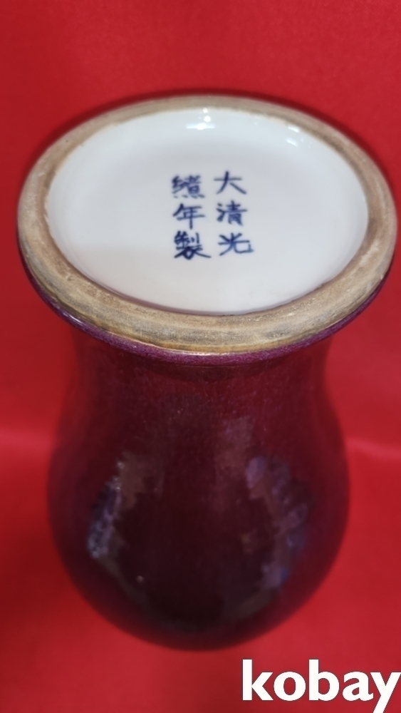 대청 광서연제 관지 유리홍 매병입니다,