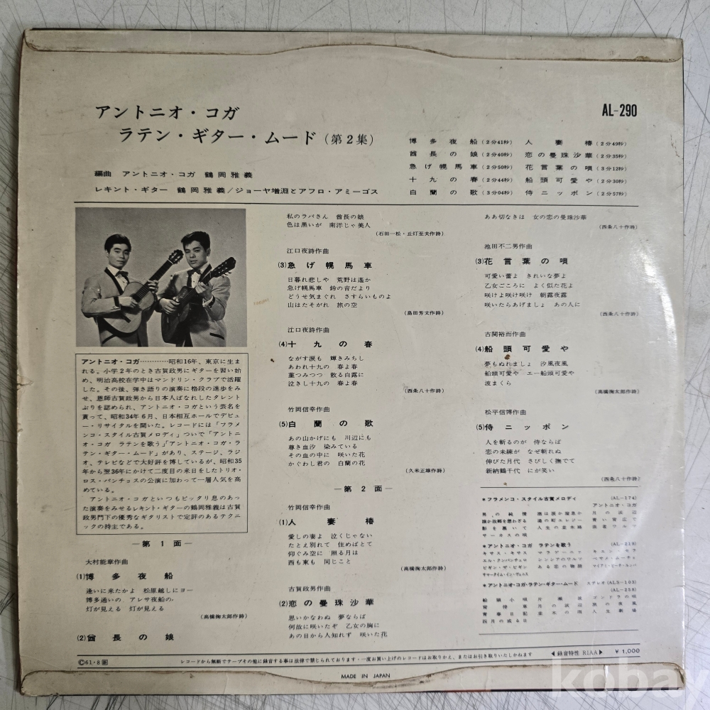 | 자켓상태 | VG : 주름, 접힘, 모서리 찢김 다수 | 음반상태 | VG : 생활 기스 다수, 가벼운 노이즈 존재 | 발매정보 | 초반 | 가사지여부 | 무 |