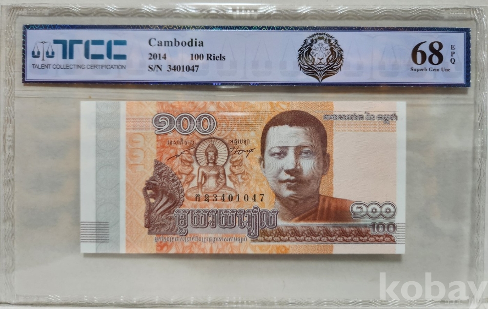 -2014년 캄보디아 100리엘 지폐 TCC68 고등급 입니다.