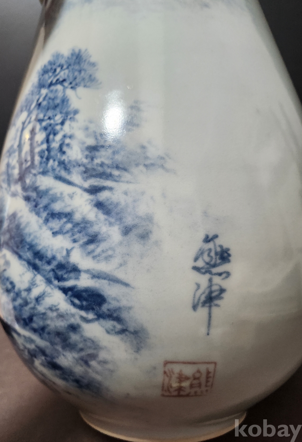 백자청화산수문호[白磁靑華山水紋壺] < 도예가 수결 작품 >