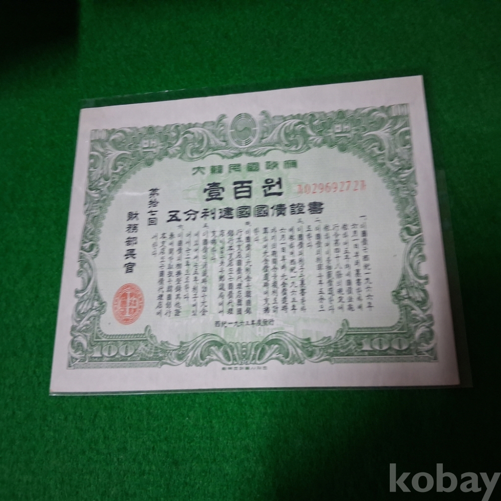 대한민국 1963년 건국채권 17회 100원 미사용
