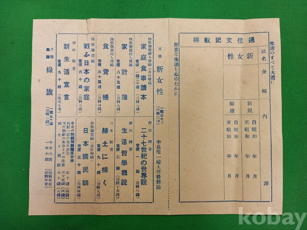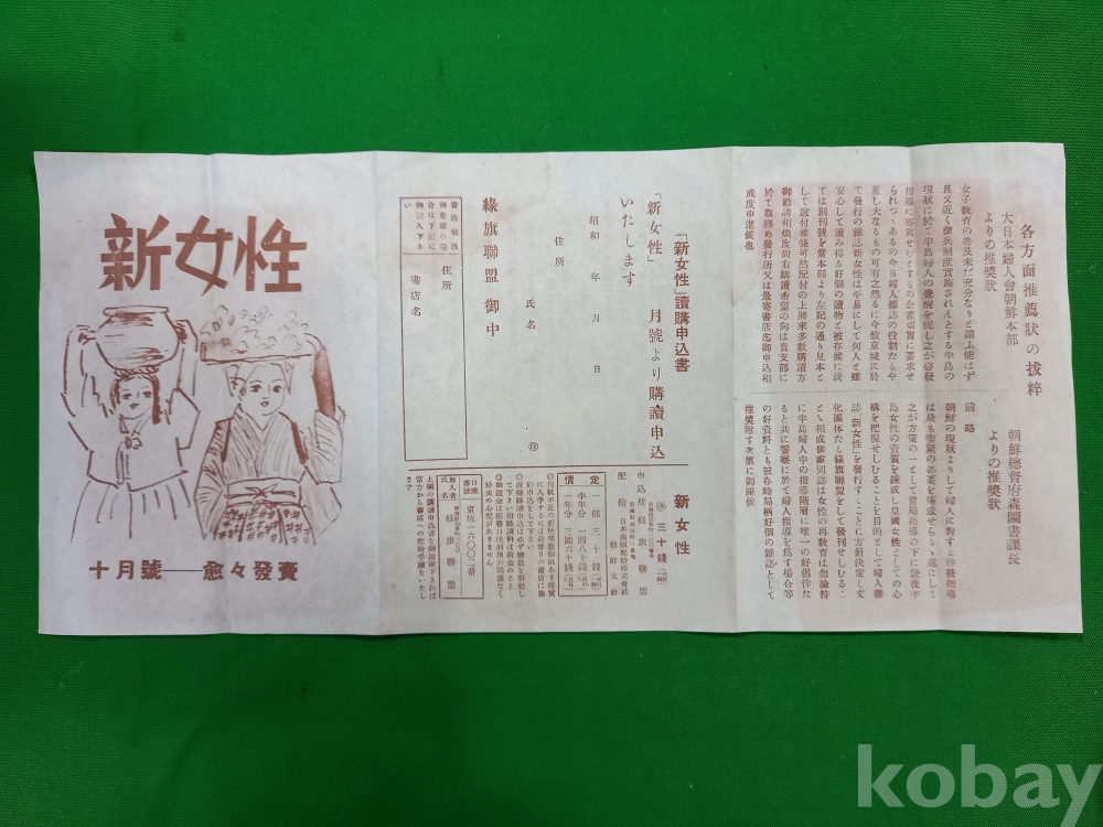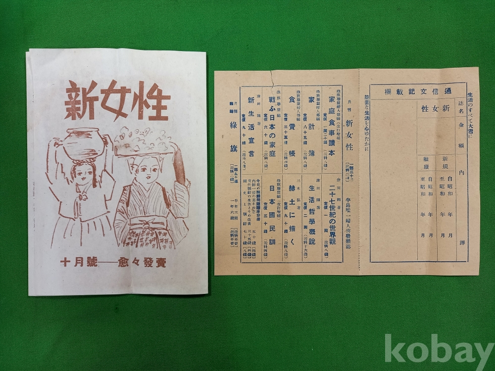 일본 제국의 여성 잡지인 「신여성(新女性)」의 10월호 구독 신청서입니다.