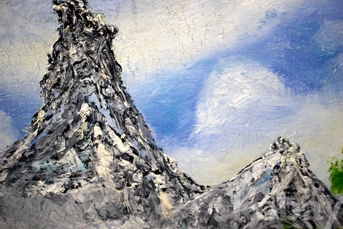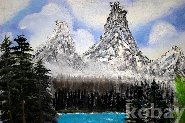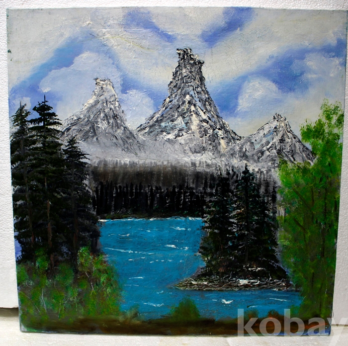 (유화) 작가미상의 설경유화작품(4) - 눈이 덮힌 호숫가의 겨울 풍경 (45 x 45 cm)