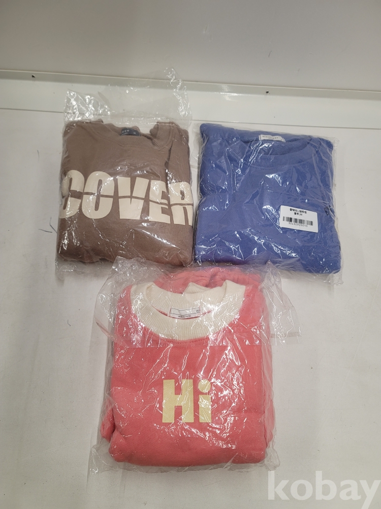 [*천원행복*] L - 1-0684 아동 맨투맨 2개 (브라운, 블루, M사이즈, 미개봉), 아동상하복 (핑크, M사이즈, 미개봉)