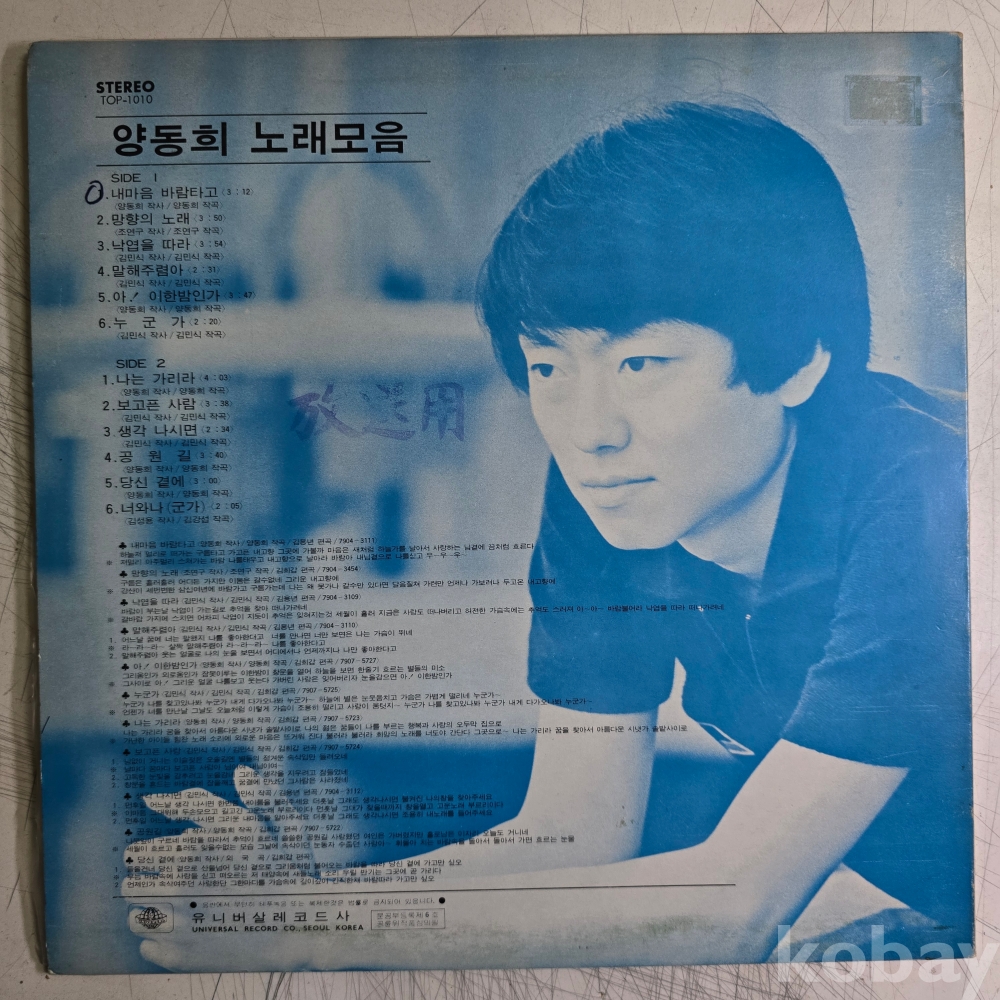 | 자켓상태 | VG : 주름, 접힘, 모서리 찢김 다수 | 음반상태 | VG : 생활 기스 다수, 가벼운 노이즈 존재 | 발매정보 | 초반 | 가사지여부 | 무 |