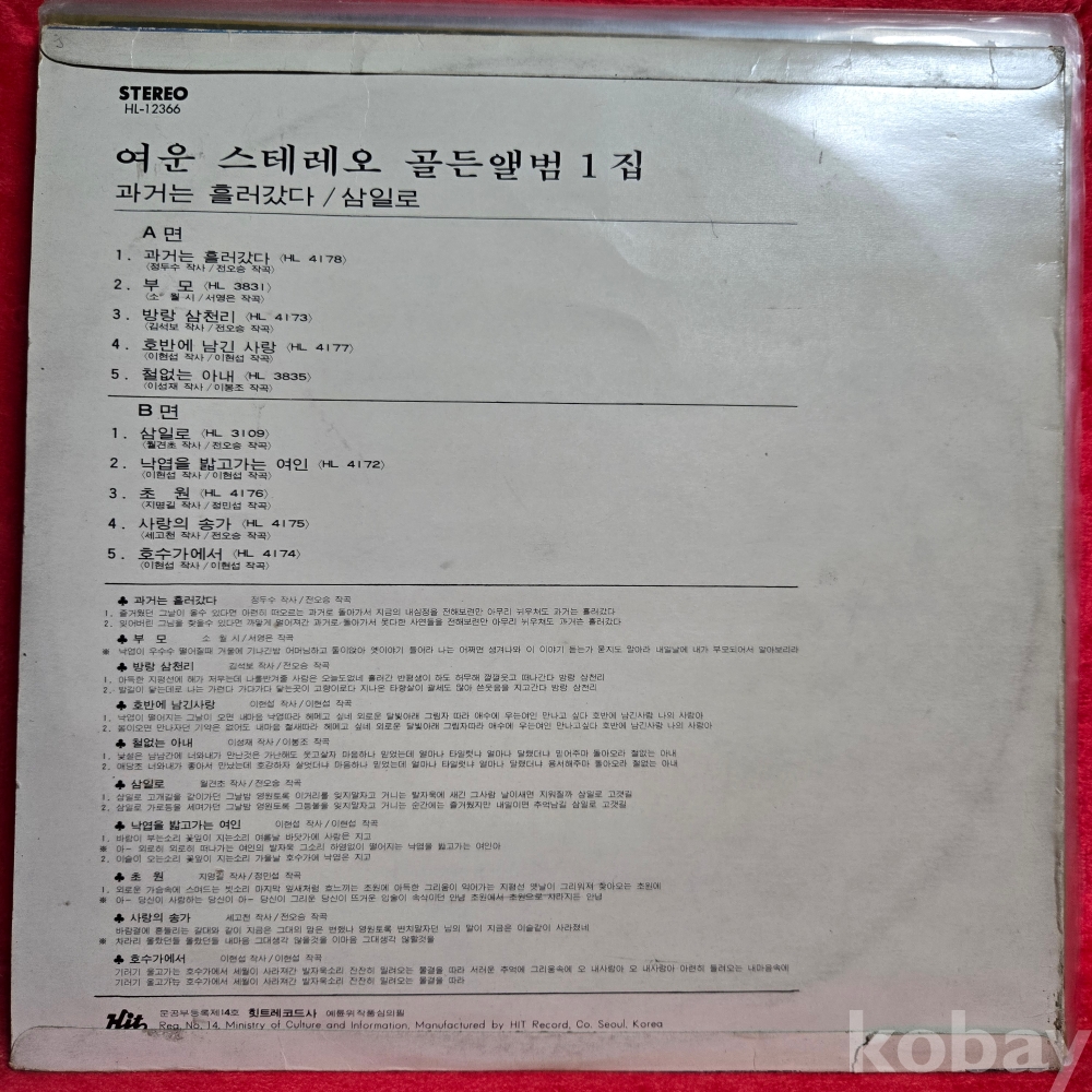 중고 LP인 관계로 취소나 반품도 불가합니다.