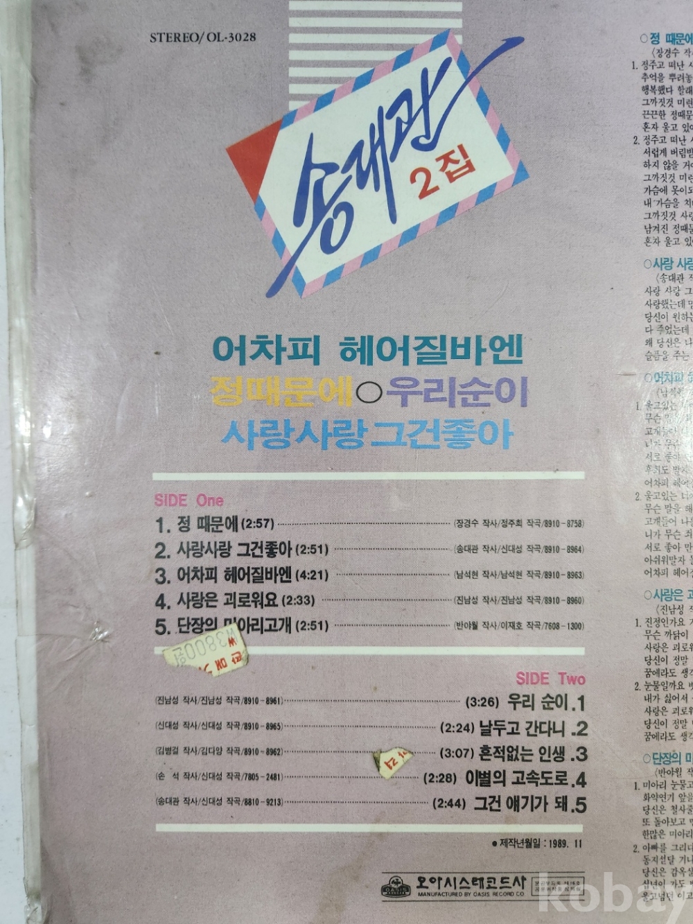 송대관 2집 LP판입니다.