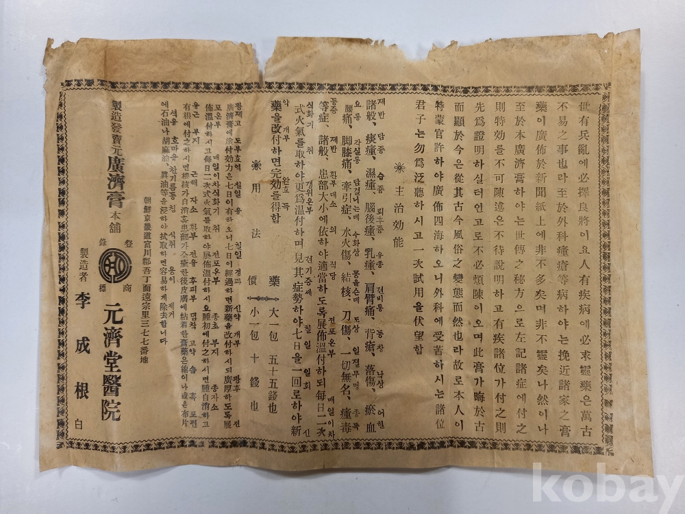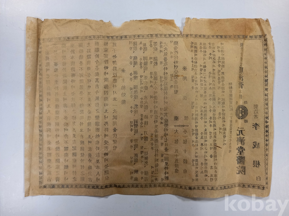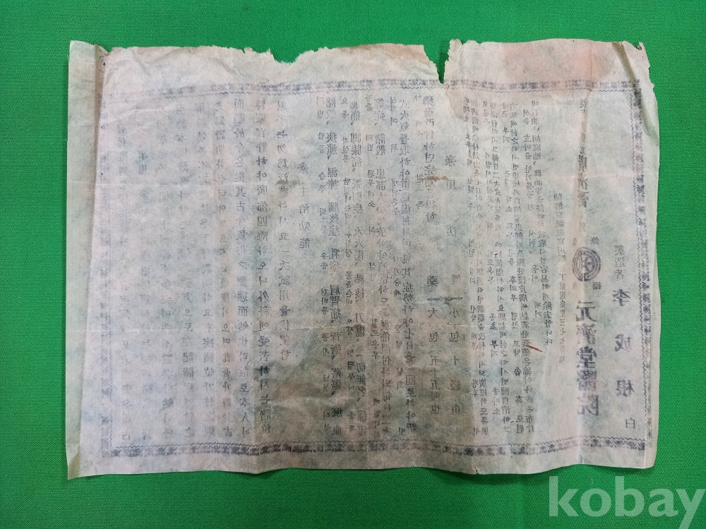 세월의 흔적 및 상단 찢어진 부분 있습니다