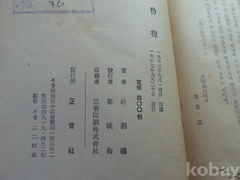1967년 초판 朴淵 禧(박연희)작 소설집