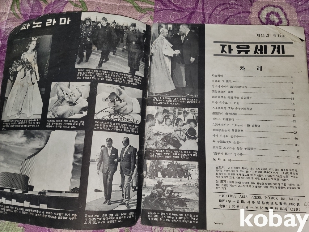 빈티지 세월 감이 느껴지는 1966년도에 발매된 제14권 11호 자유세계 잡지입니다.