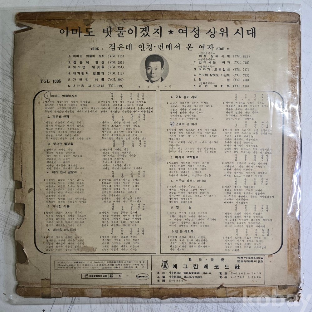 | 자켓상태 | VG : 주름, 접힘, 모서리 찢김 다수 | 음반상태 | VG : 생활 기스 다수, 가벼운 노이즈 존재 | 발매정보 | 초반 | 가사지여부 | 무 |
