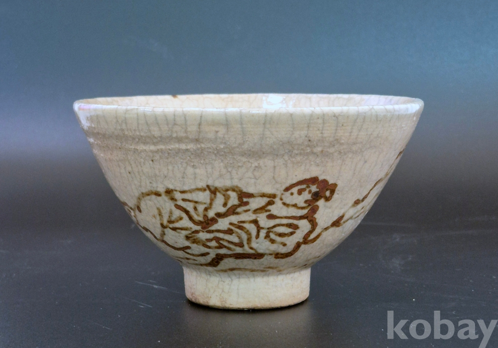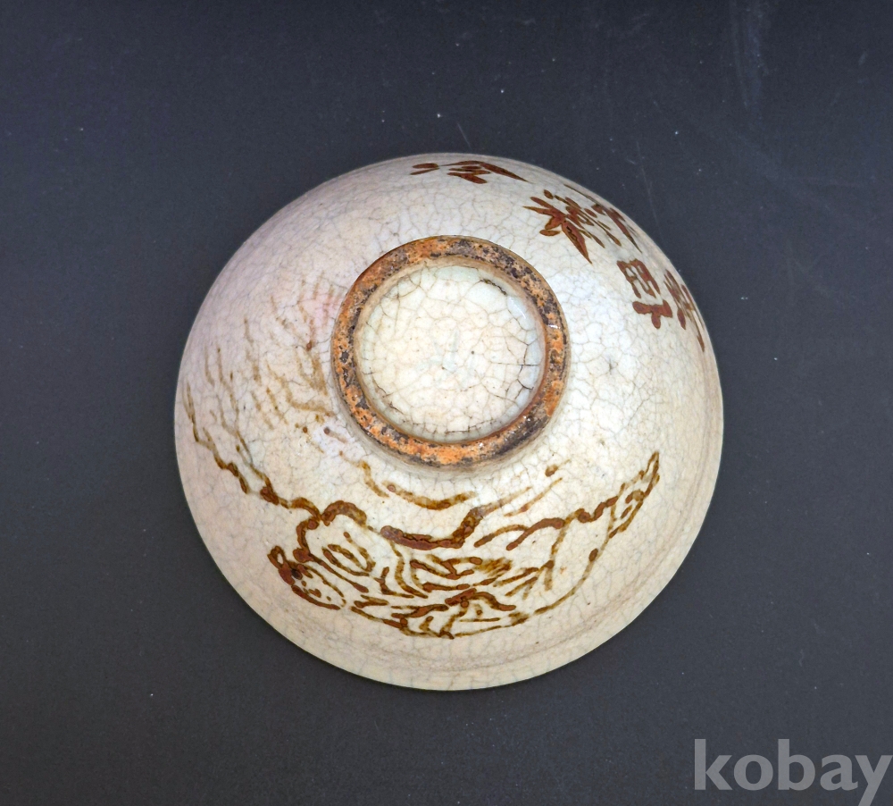 보통 아무 문양이 없는 경우가 많지만, 이 다완에는 철화로 다섯
