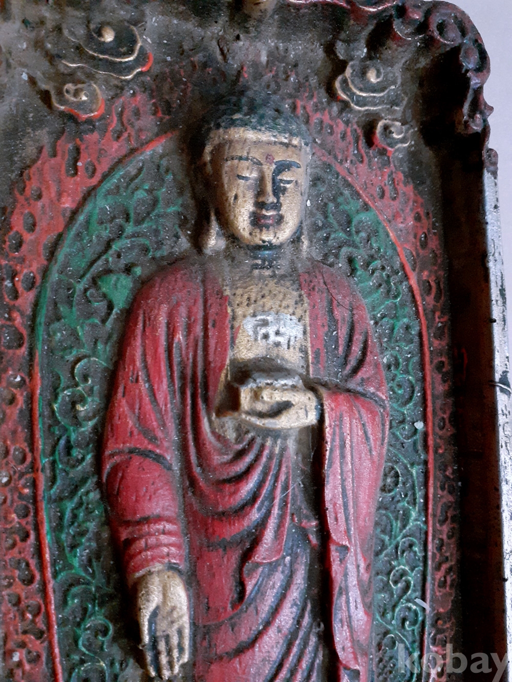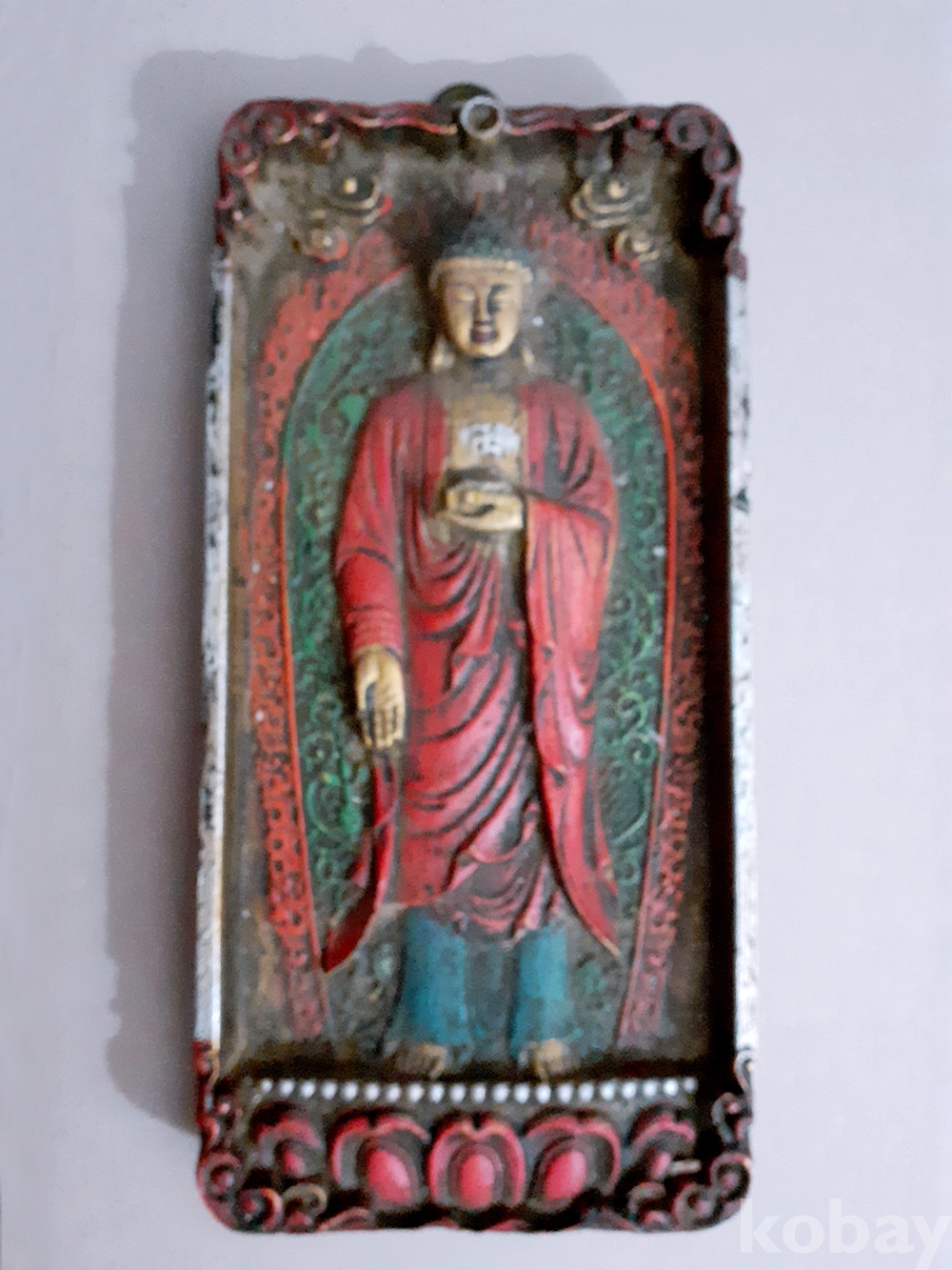 부조로 만들어진 골동품재현작 석가모니액자1점 입니다.