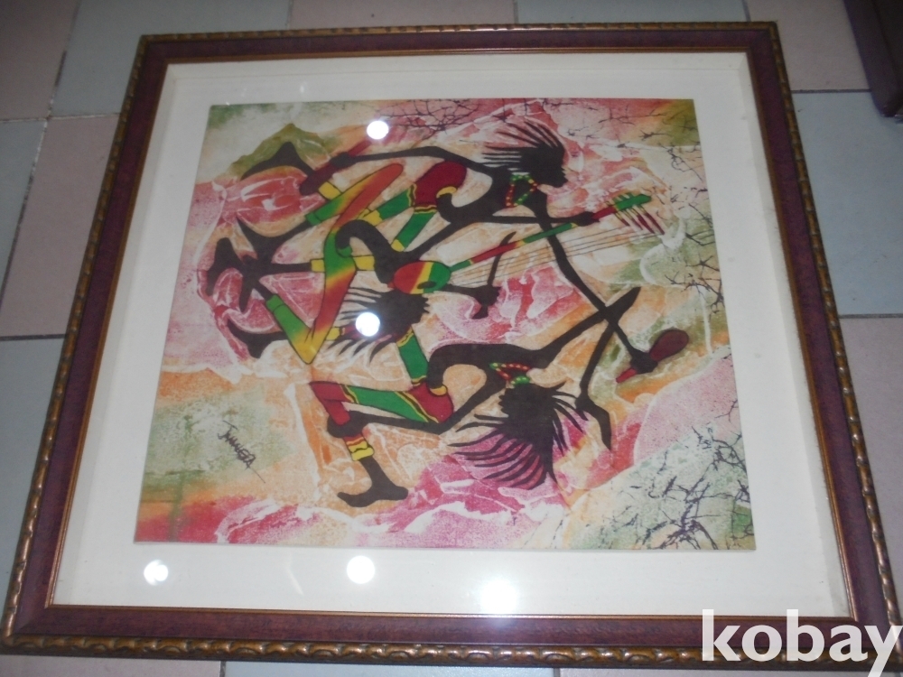반비구상으로 인디안이 알수없는 춤을추는 반비구상에 작가명있는 수준높은 실지그린 전문화가그림 액자