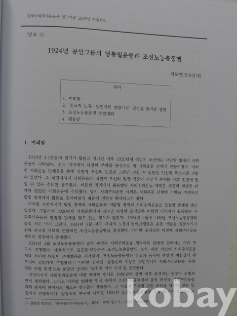(사회주의 운동) < 한국사회주의 운동사 학술대회 > (2025.10)