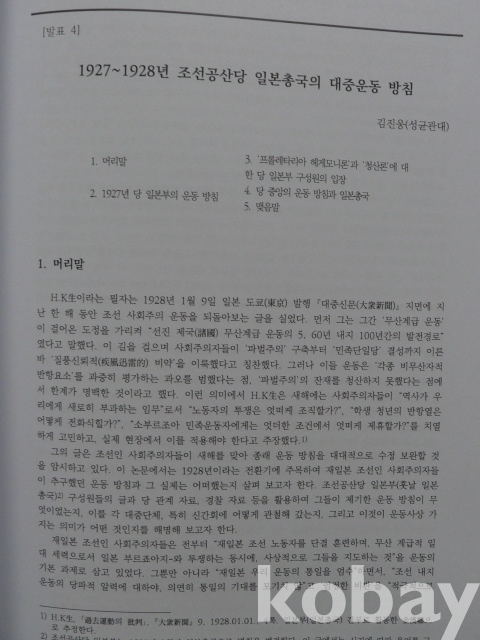 “ 주보 조선지광 ~~~”, “ 1927~1928년 조선공산당 ~~~” 등 7편의 논고