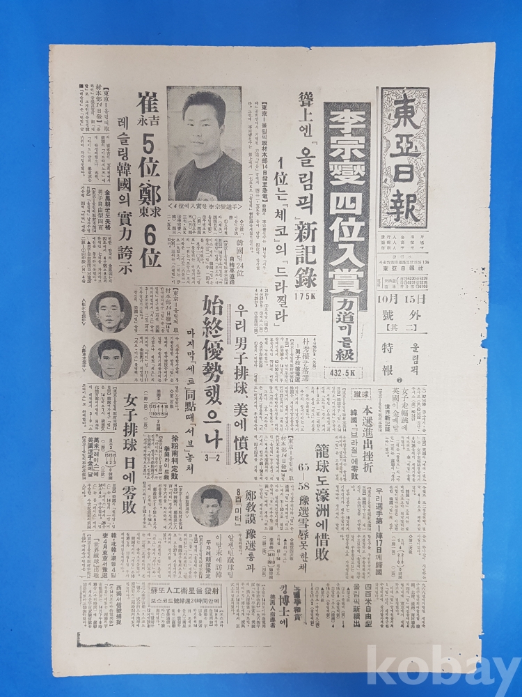 **** 동아일보 호외(1964.10.15)*제18회 동경올림픽 소식/역도미들급. 이종섭 4위입상
