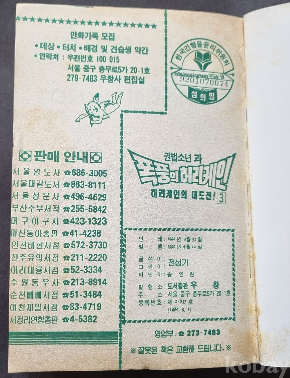 ee-3 / 스타 코믹스 만화 "권법소년과 푹풍의 허리케인" 전성기 글, 그림 (302 쪽)
