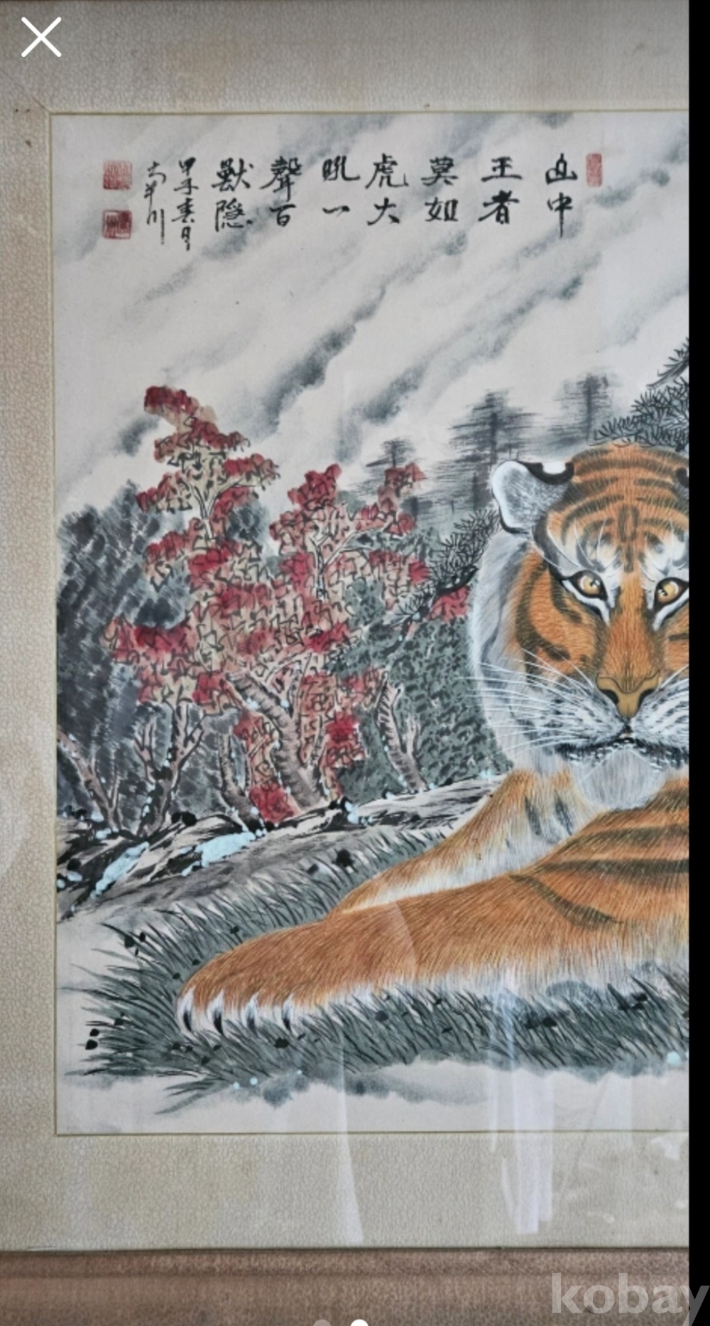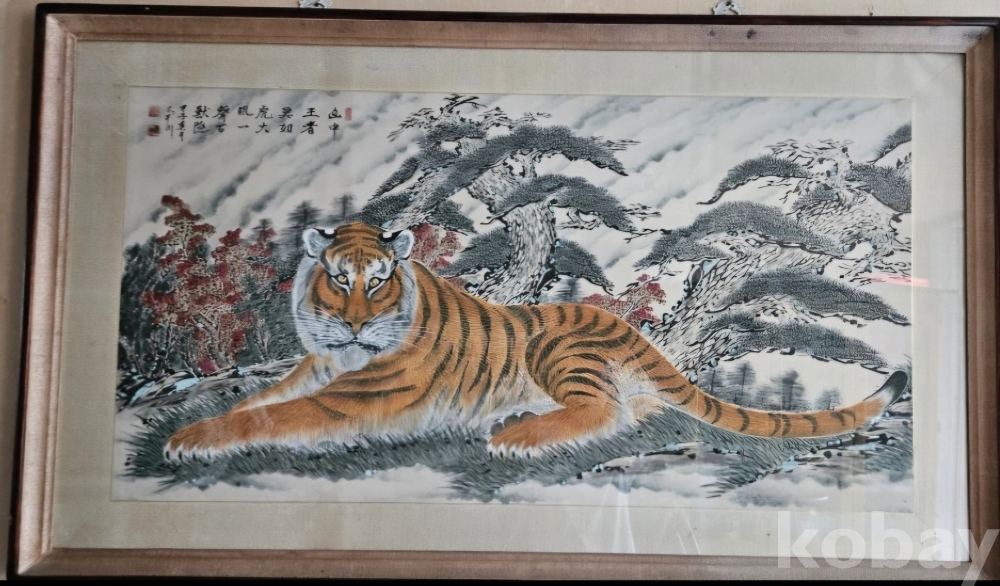 호랑이 그림으로 추정연대는 정확하지 않지만 오래된 듯 합니다. 크기는 좀 있는 편입니다.