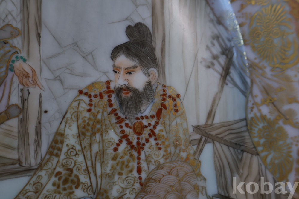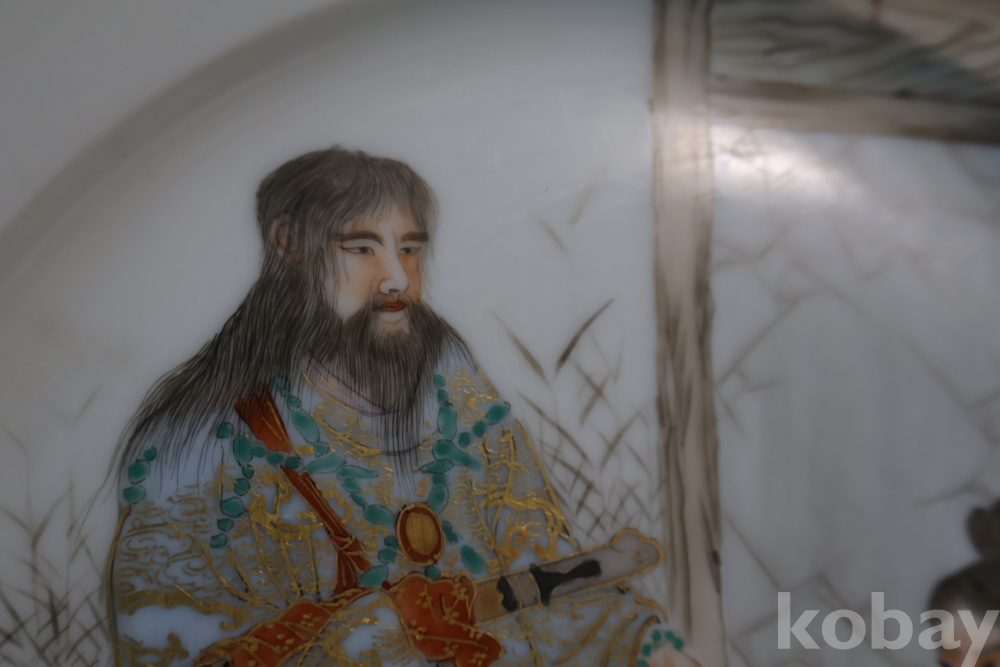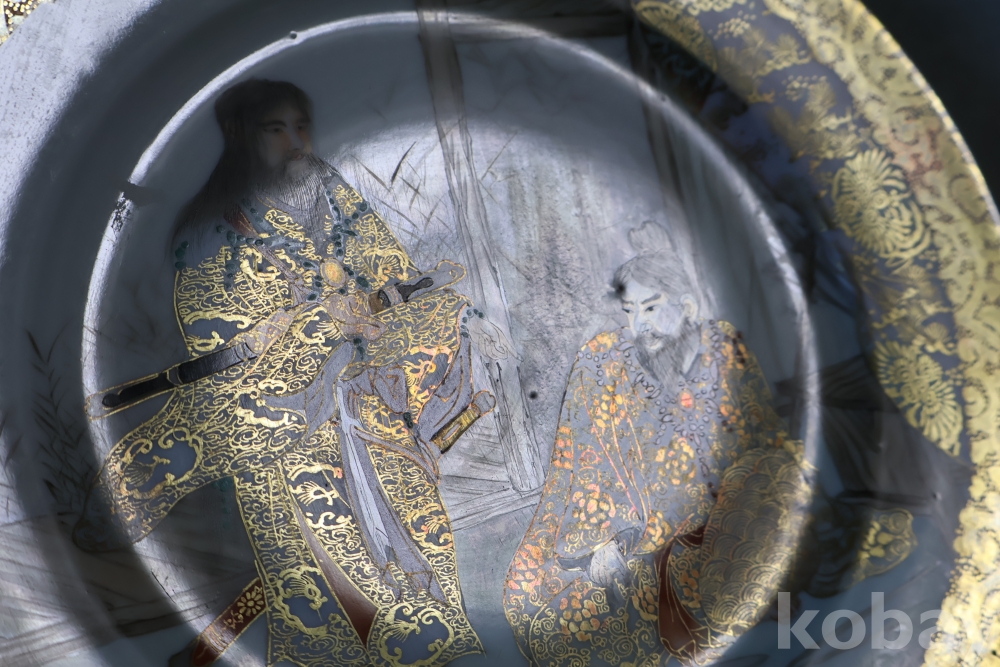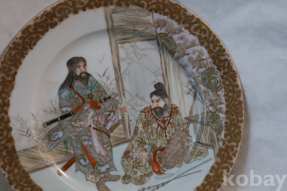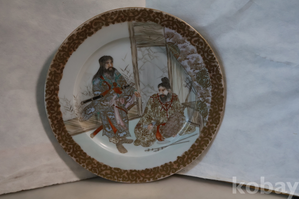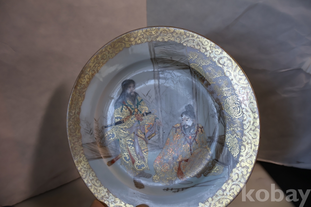 명치기의 구미 유럽 수출 도자기 접시 임니다 사무라이 칼을 주제?로한 황금 접시 임니다 섬세 정교 도공의 혼을 가진 명품 임니다