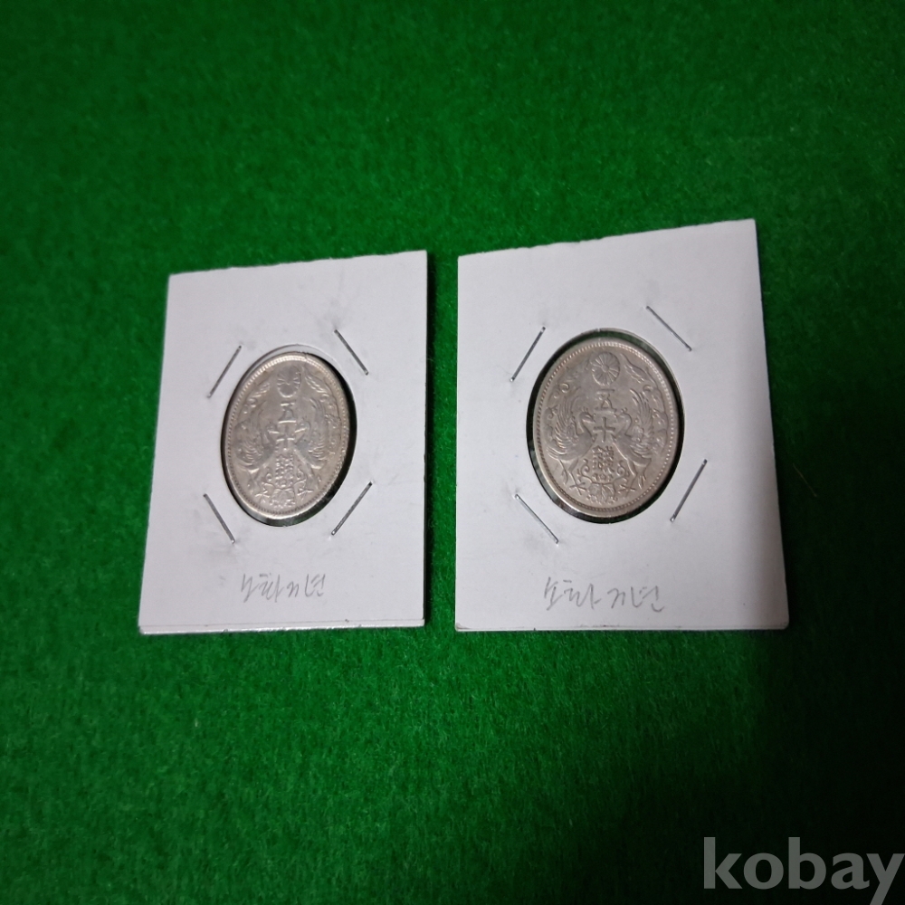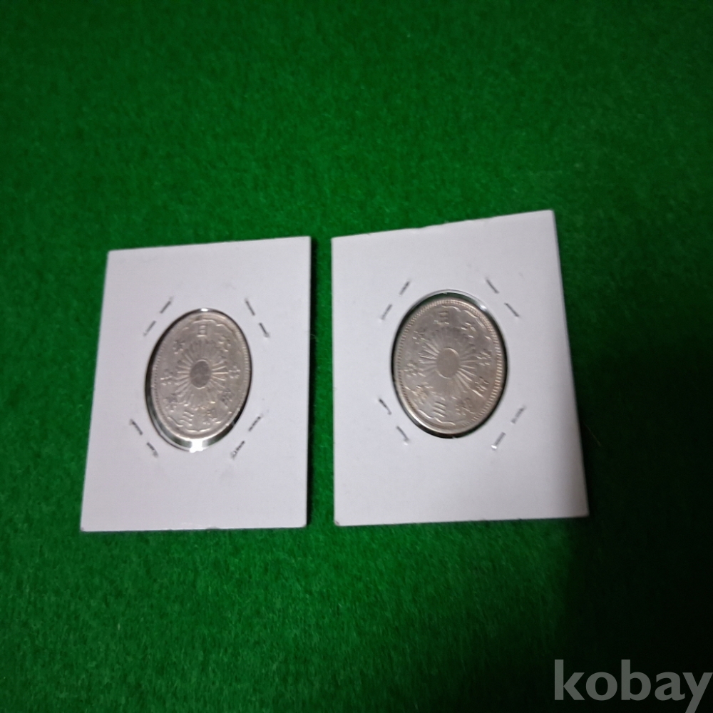 일본 소화3년 봉황50전 은화2매 사용제