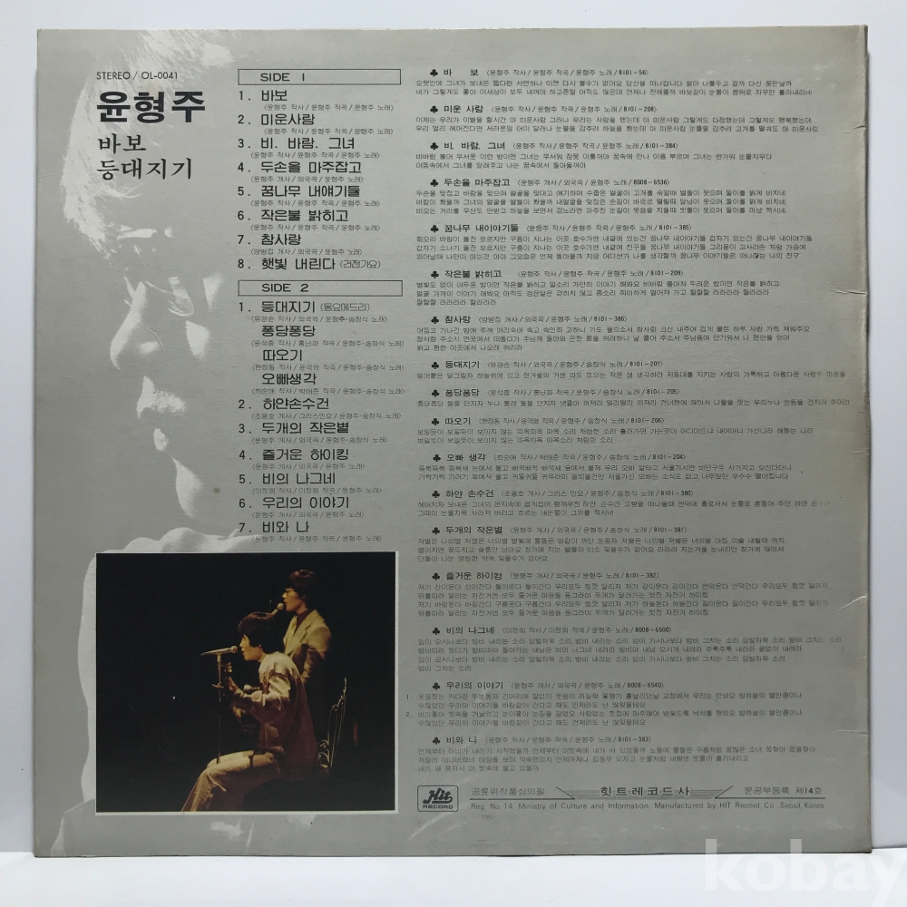 LP 360-11 윤형주 - 바보/ 등대지기 자켓 EX+ 알판 EX+ 81 년 국내반