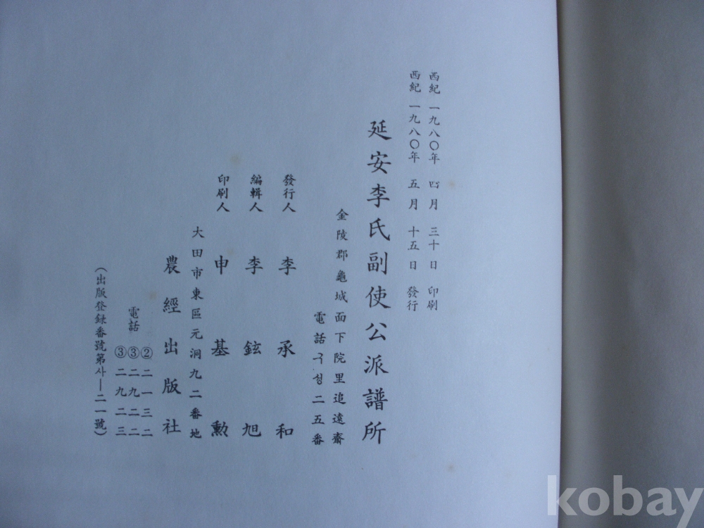 연안 이씨 세보 - 상하 2권일괄 (1980년, 연안이씨 부사공파보소)