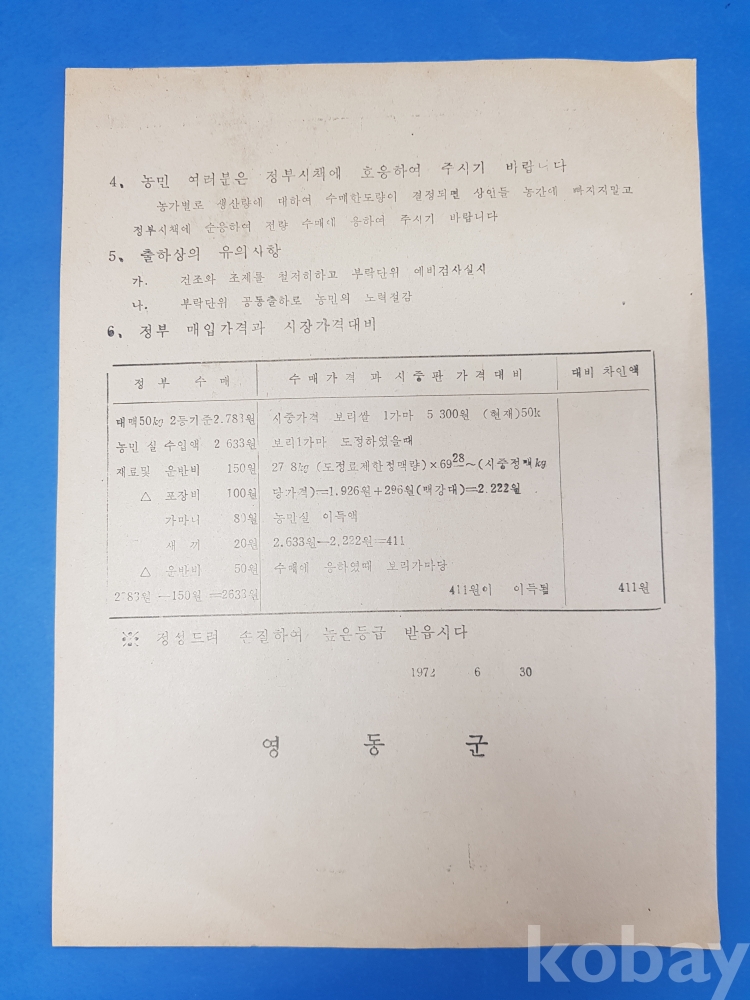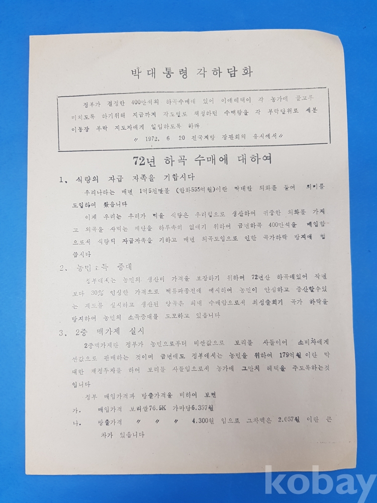 **** 박대통령각하담화/72년 하곡 수매에 대하여/1972.6.30/영동군