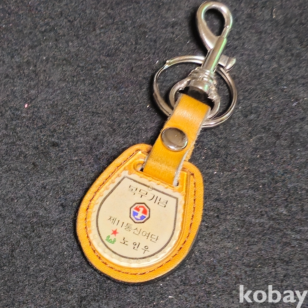 (((군자료/키홀더/열쇠고리))) 오래전 제11통신여단 복무기념 가죽 키홀더 (여단장 준장 노인우)