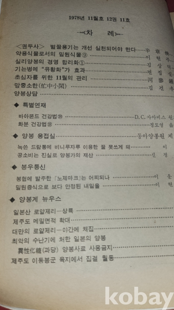 1978 년에 발행된 양봉계(養蜂界) 양봉계사 발행 11 월호입니다,