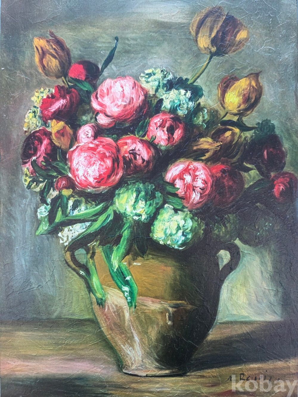 〈작약이 담긴 꽃병〉은 르누아르 특유의 부드럽고 풍부한 색채감이 돋보이는 정물화를 모티브로 한 오마주 작품입니다.