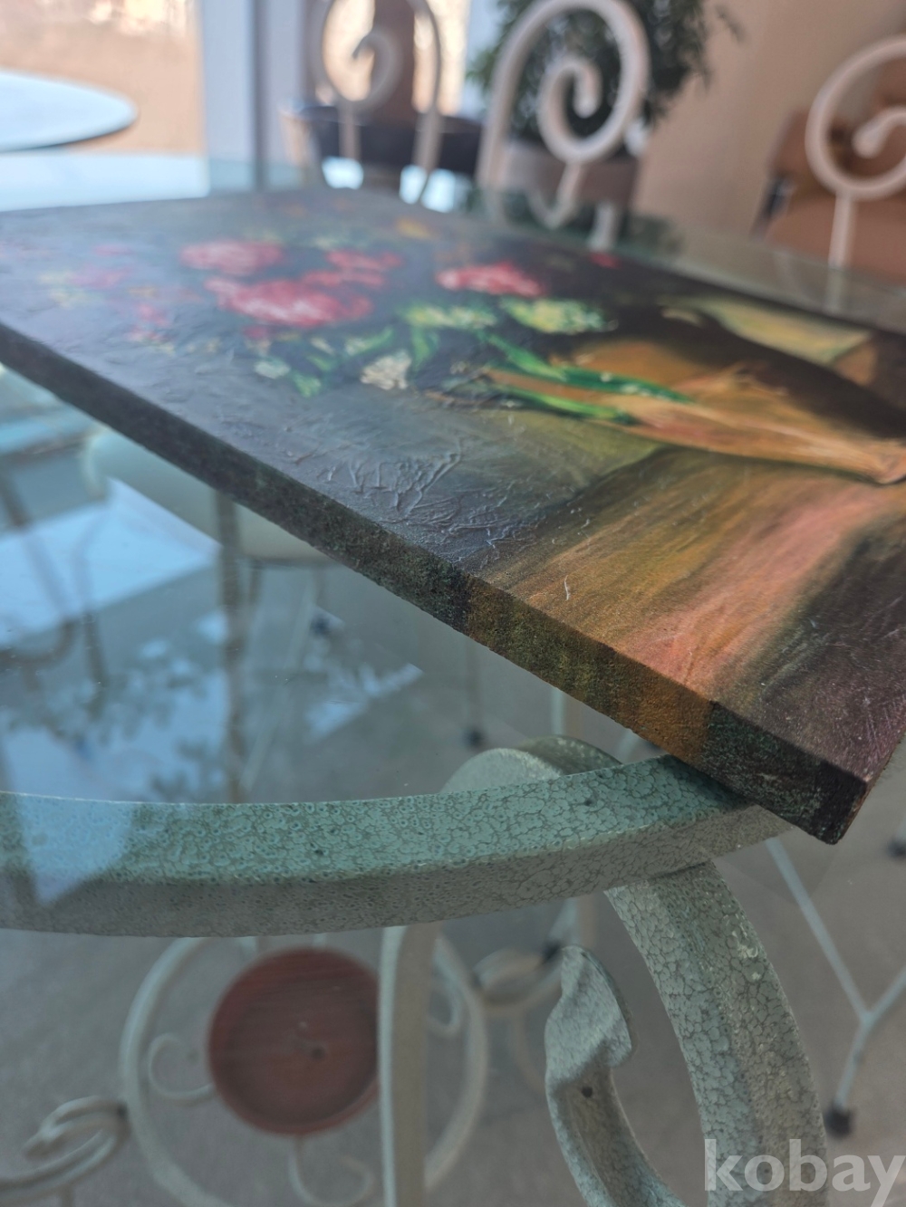 패널 위에 마띠에르 작업을 선행한 뒤 UV 프린트 방식으로 완성되어, 단순한 평면 출력이 아닌 물감의 적층감과 표면 질감이 살아 있는 것이 특징입니다.