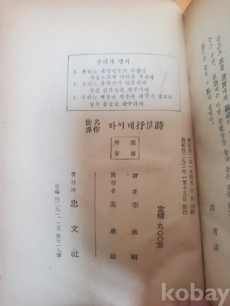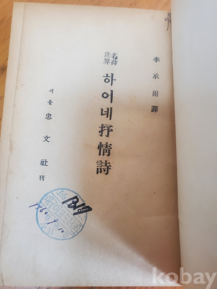 1. 하이네 서정시, 이승우 번역, 충문사, 1959년, 216쪽, 상태 상, 사진 참조