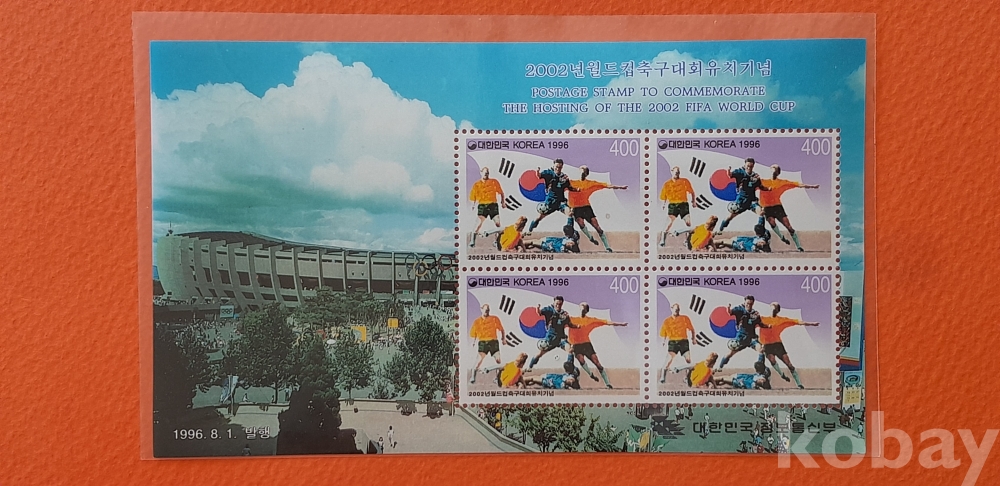 1996년 2002년 월드컵 축구대회 유치 기념 4매 전지(미니어처 시트) 2종 입니다.