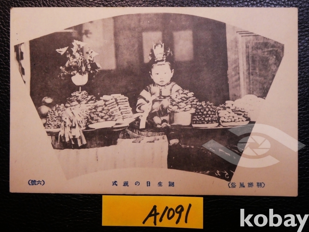 ▣근대한국엽서(진본): 어린이 탄생일의 축하 모습, 돌잔치의 모습, 조선풍속/1매/역사자료/일제강점기 사진엽서, 그림엽서, 회엽서. A1091