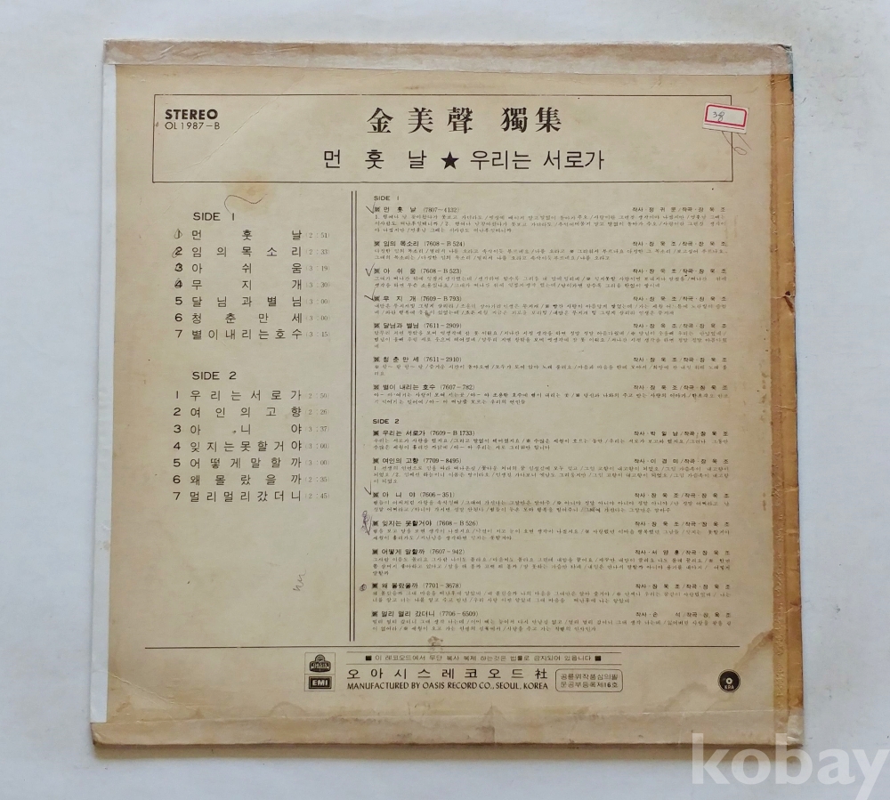 EX : 약간의 마모, 모서리 찢김 존재 음반상태
