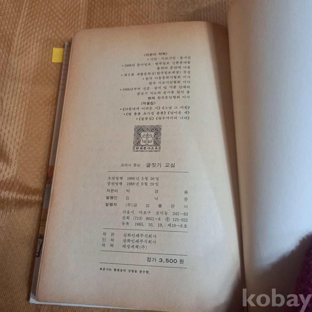 A 2922: 88년 신동우그림 표지의 "글짓기 교실"(금성출판사)