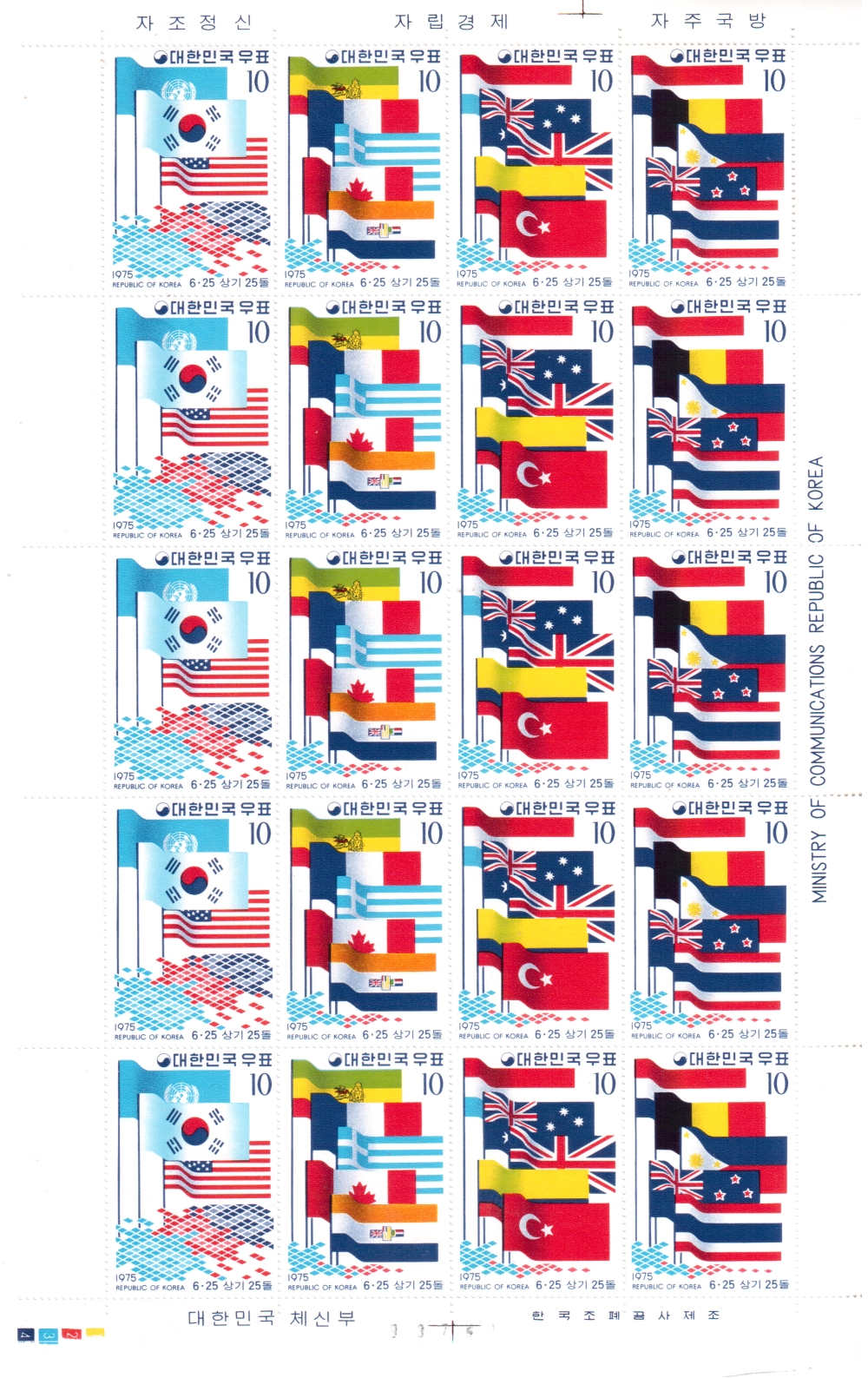 1. 태극기와 유엔 및 미국기, 이디오피아외, 룩셈부르크외, 네덜란드외(10원) (4x5)