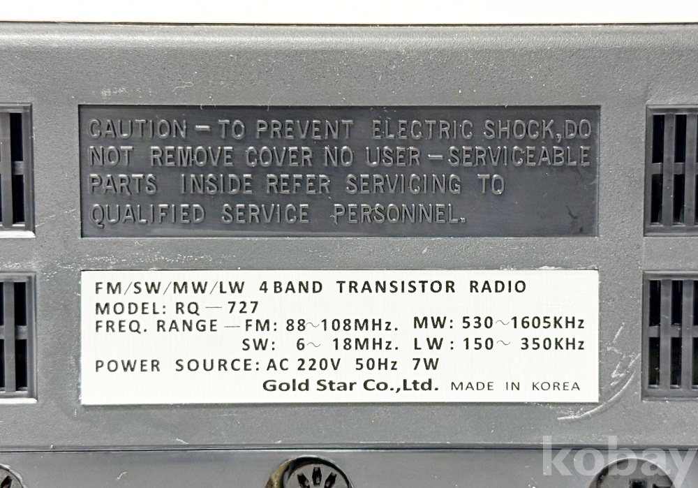 상품설명 | 금성사에서 제조한 RQ-727 모델의 FM / SW / MW / LW 4밴드 트랜지스터 라디오이다. 전원 : AC 220V 50Hz 7W