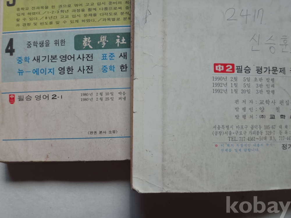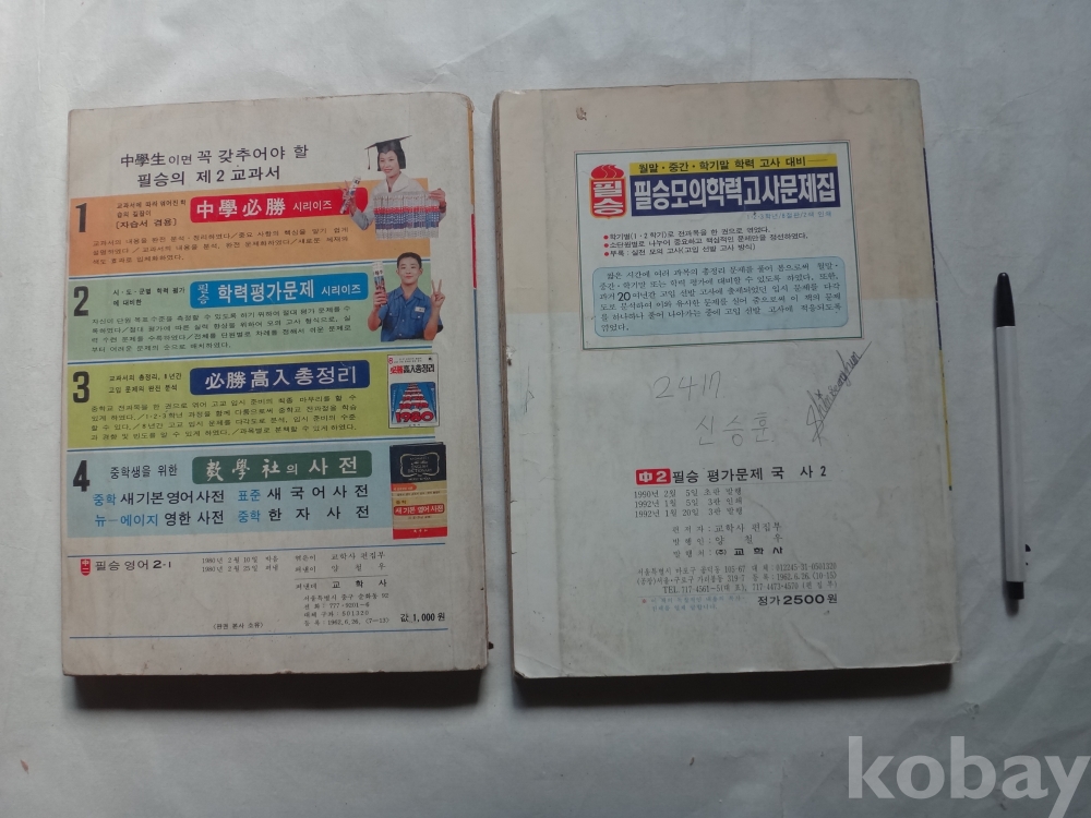 (중2) 필승 영어 2-1, 필승 평가문제 국사 2 (2권일괄, 1980, 1992년, 교학사)
