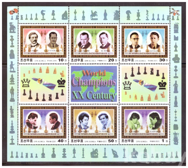(장기) 북한 2001.1.5 세계장기선수권보유자들 sheet of 6+3 labels MNH