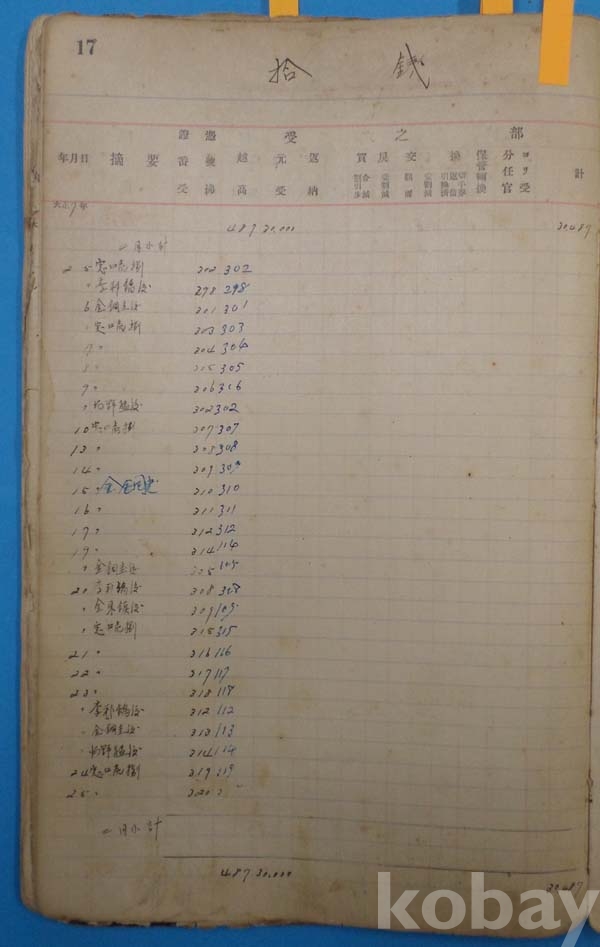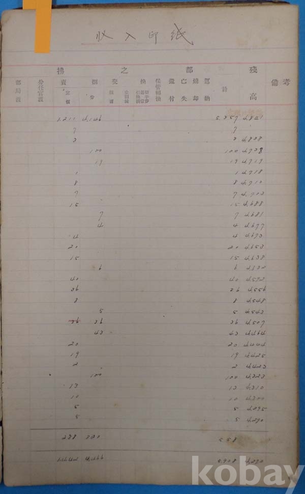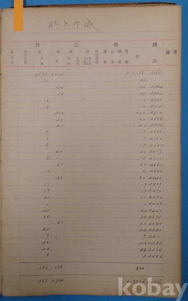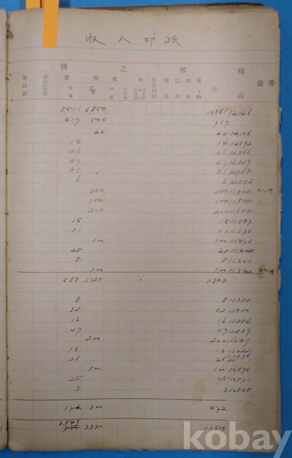 일제강점기 大正년간 安東郵便局 수입인지 판매대장 *[액면별,일자별로 수불량,잔고량을 기재 하였음]