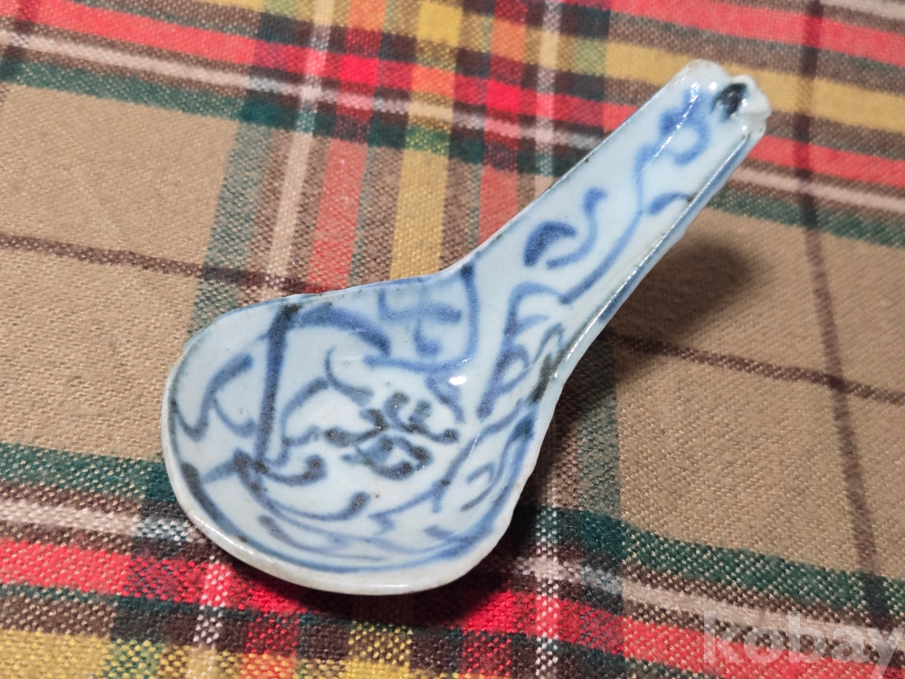 <투킴스> 중국골동 고청화 초화문 수저 #2