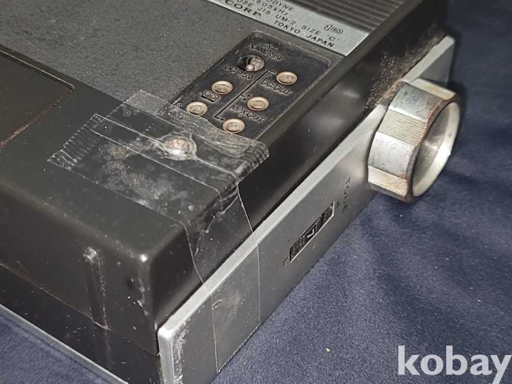가죽 케이스가 많이 해어진 상태이며 라디오도 누군가 수리하려고 열다가 케이스 나사 고정부를 손상시켜 유격이 있는 상태입니다.