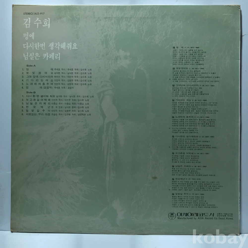 LP LP 1-23-21 김수희 - 멍에/다시한번 생각해줘요 . 자켓 EX 알판 EX 82 년 국내반