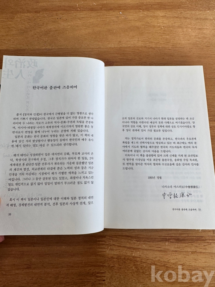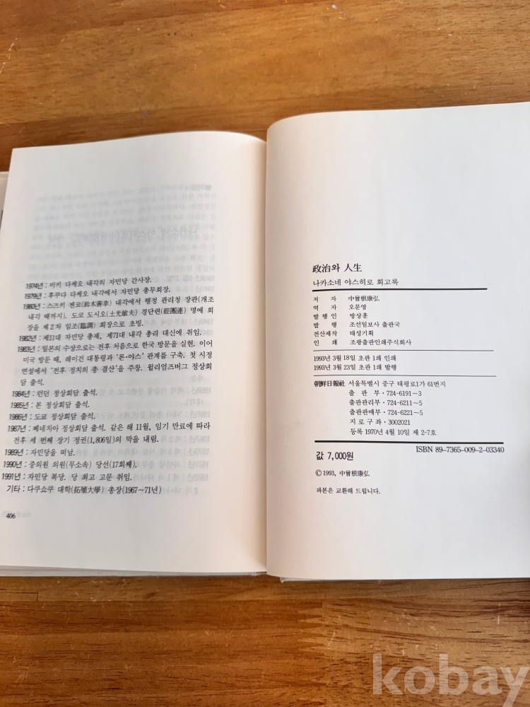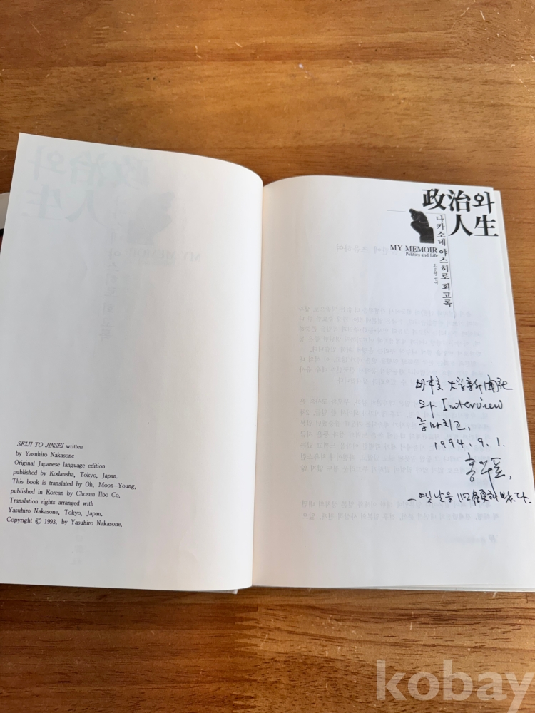 [일본현대사 회고록] 오문영 번역, <정치와 인생_나카소네 야스히로 회고록>, 1993, 조선일보사, p. 406, 중급(사진참조)