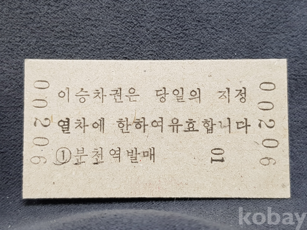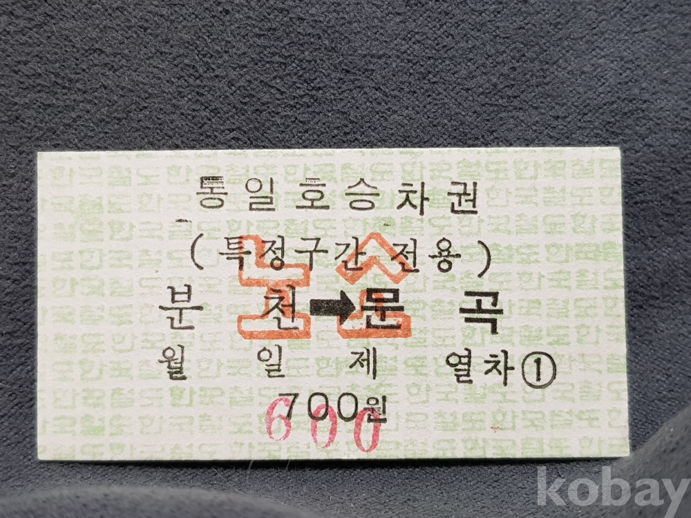 - 미사용 통일호 승차권(특정구간전용) 노소 " 분천 ▶ 문곡 " 600원