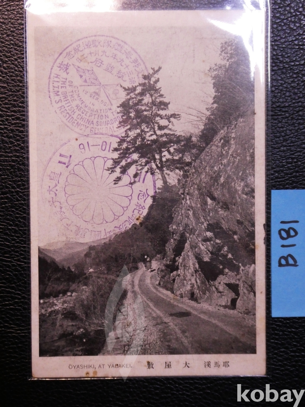 ▣근대한국엽서(진본): 일본의 야바케 풍경 엽서에 일본황태자(후에 대정천황) 한국방문 인천 기념인, 영국지나함대 한국방문 경성 기념인, 뒷면에 순종황제 즉위 인천 기념인 등 3개 날인 엽서/1매/일제강점기 사진엽서, 그림엽서, 회엽서. B181