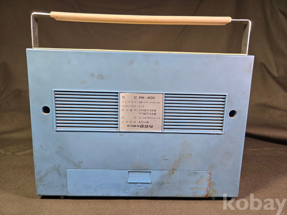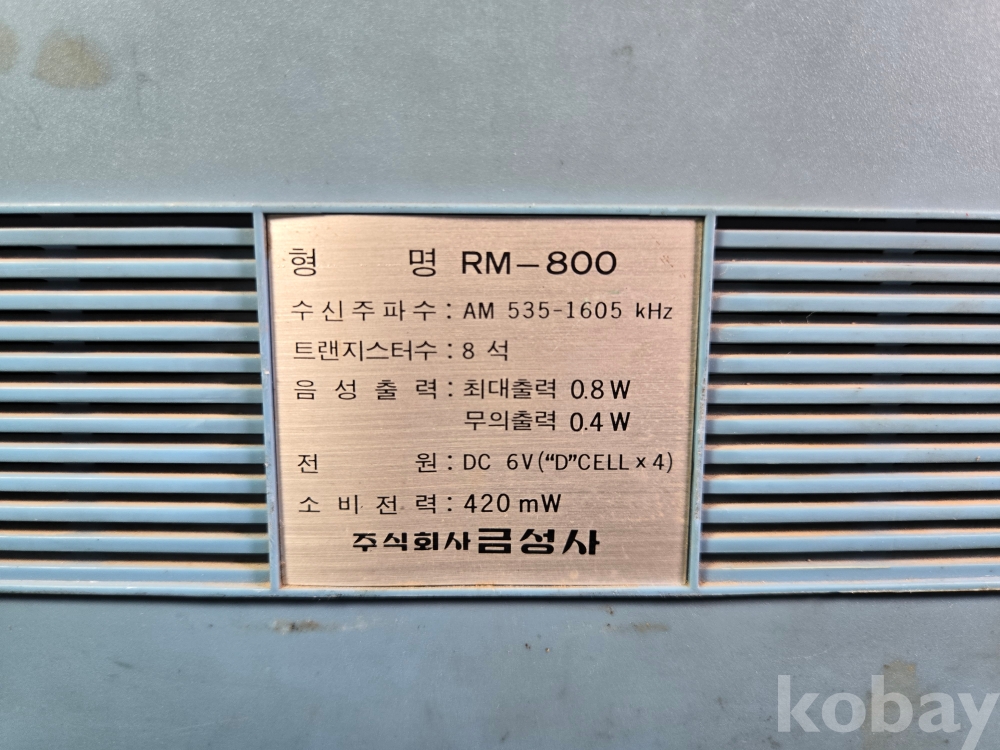 1970년대 주식회사 금성사에서 제작한 8트랜지스터 라디오 RM-800 측면에 손잡이가 있어 휴대할 수 있는 형태임. 앞면 우측에 'TUNING', 'OFF-VOL', 'SENS', 'TONE' 4개의 조절장치 모두 작동 완벽하며 라디오 수신도 잘됩니다.