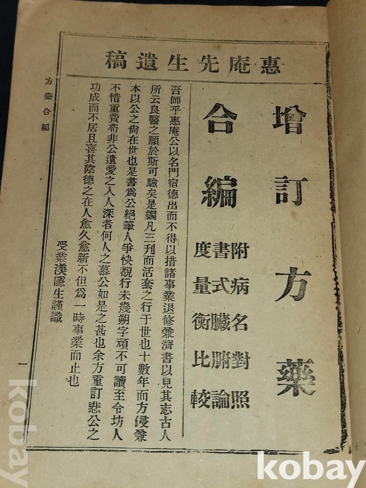 빈티지 세월 감이 느껴지는 1955년 발행 방약합편(方藥合編) 고서적입니다.